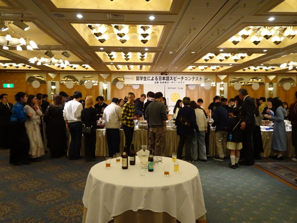 そしてコンテスト終了後には懇親パーティーが開かれ、ロータリアンと留学生とが交流を図り互いに楽しいひと時を過ごしました。